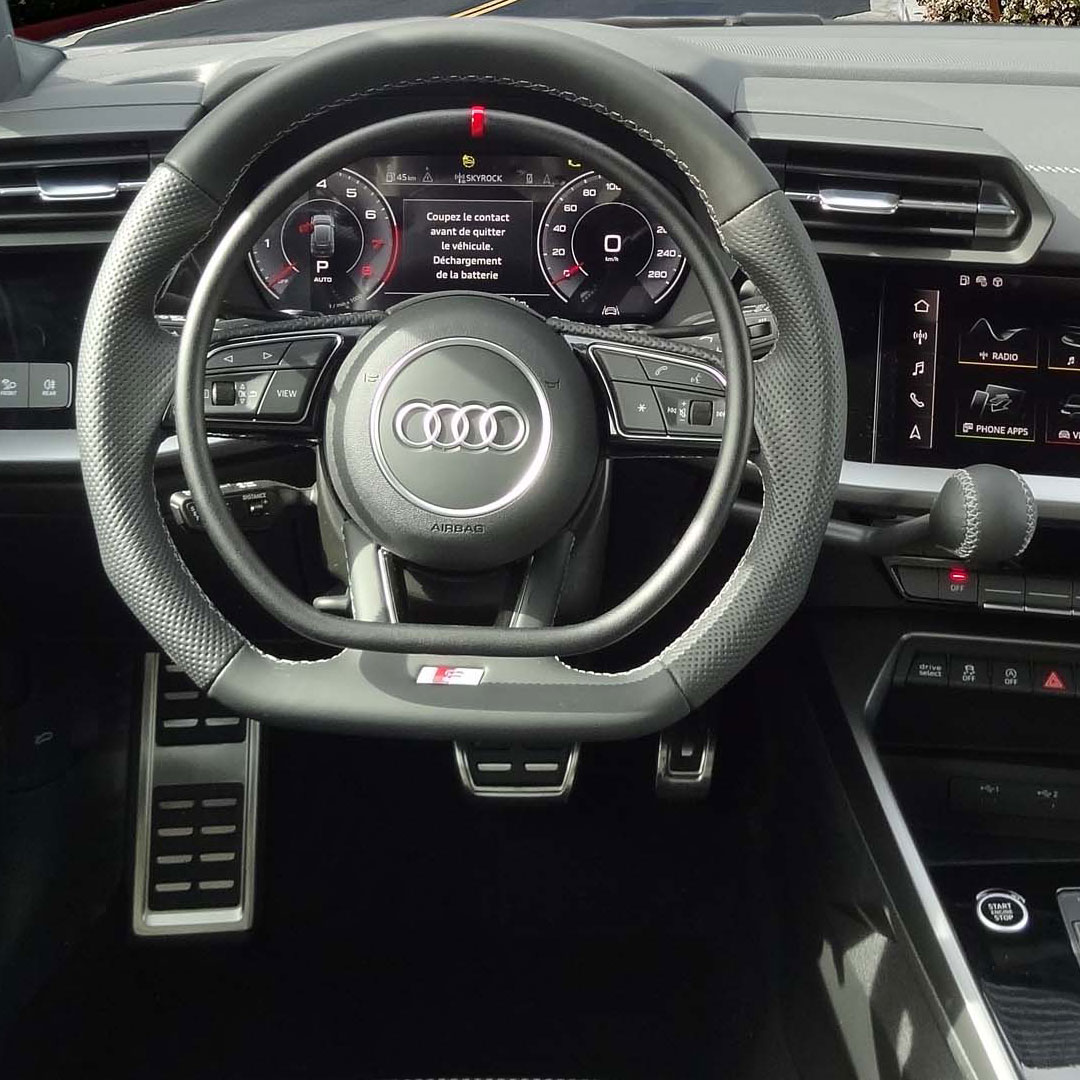 Audi S3 adapted with a digital accelerator ring Darios and a main right hand brake for a driver who cannot use his legs.