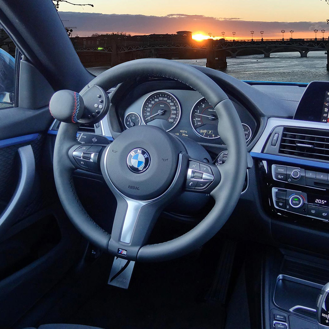 BMW M4 CSL adapted with a digital accelerator ring Darios and a main right hand brake for a driver who cannot use his legs.