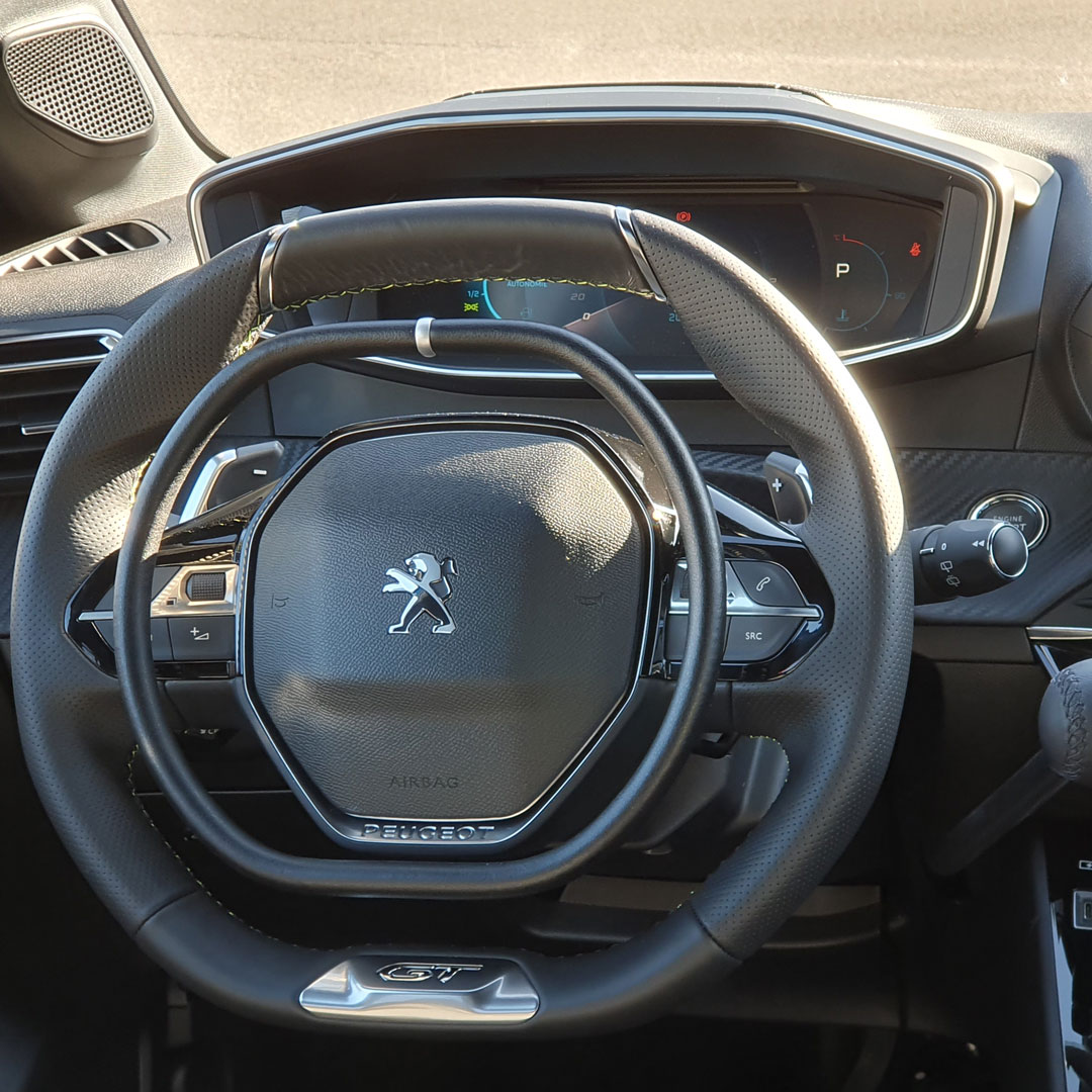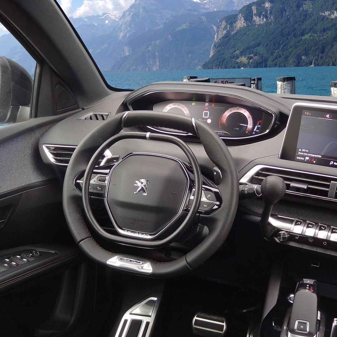 This Peugeot 5008 is equipped with a digital accelerator ring Darios 211 with a flat top and a flat bottom like the steering wheel and a main right handbrake.