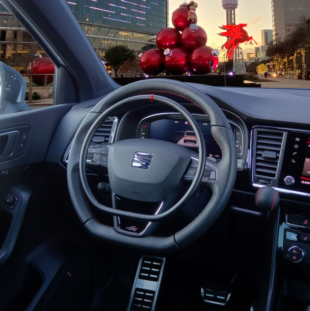 The digital accelerator ring DARIOS 211 installed in this Seat Ateca is designed for flat bottom steering wheels. It has a flat bottom and its sleeve slides over its holder to enable precise accelerations when exiting a turn.