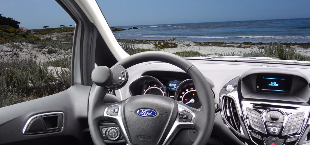 A driver without the use of the right leg,can use a switchable electronic left foot accelerator pedal installed left from the brake pedal. With a pushbutton on the dashboard the driver selects the left pedal just after starting the engine.